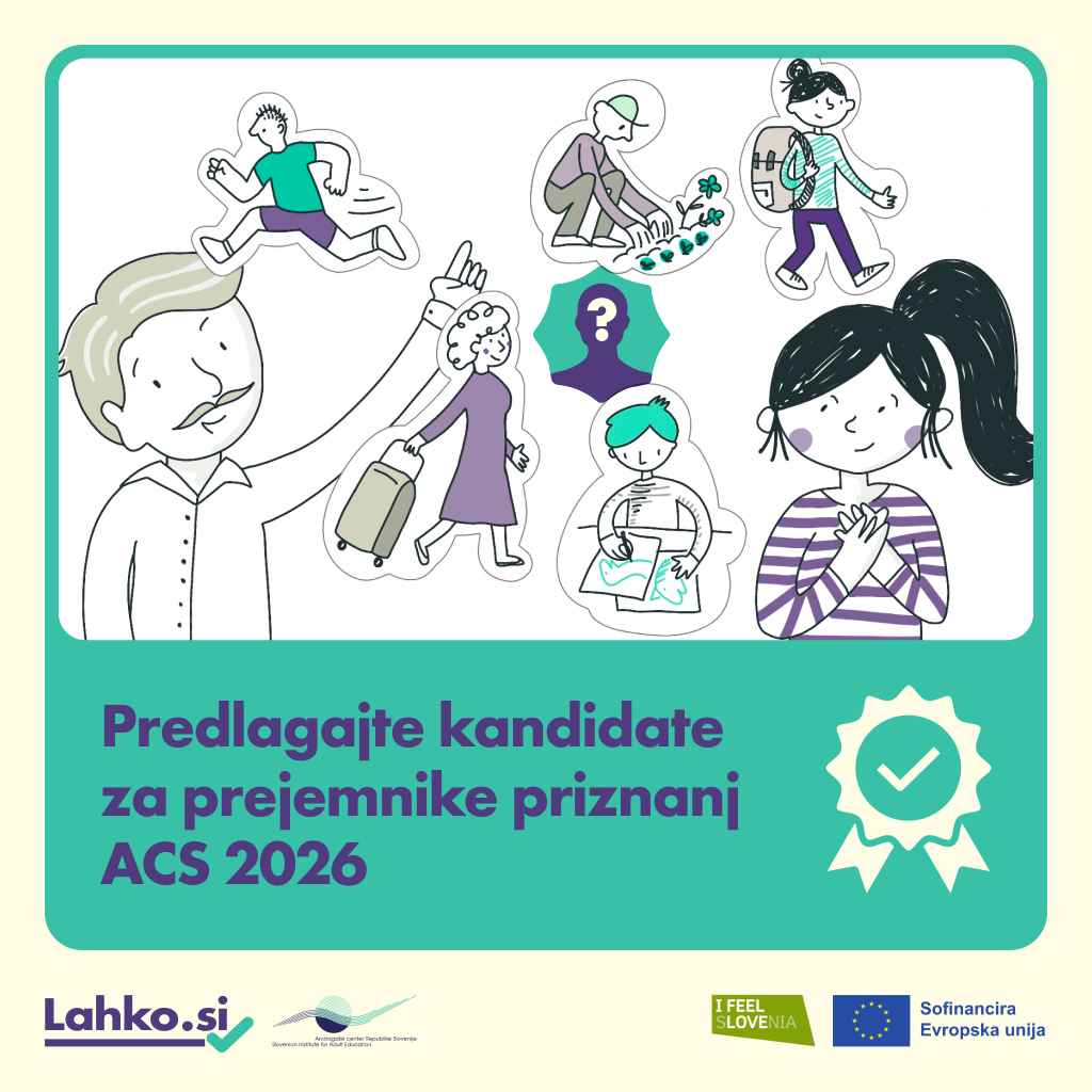 Z veseljem sporočamo, da je razpis za priznanja Andragoškega centra Slovenije (ACS) odprt! Do 3. novembra 2025 lahko prijavite posameznike, skupine ali ustanove, ki s svojo predanostjo, ustvarjalnostjo in odločnostjo na področju vseživljenjskega učenja širijo obzorja, premikajo meje in navdihujejo druge.